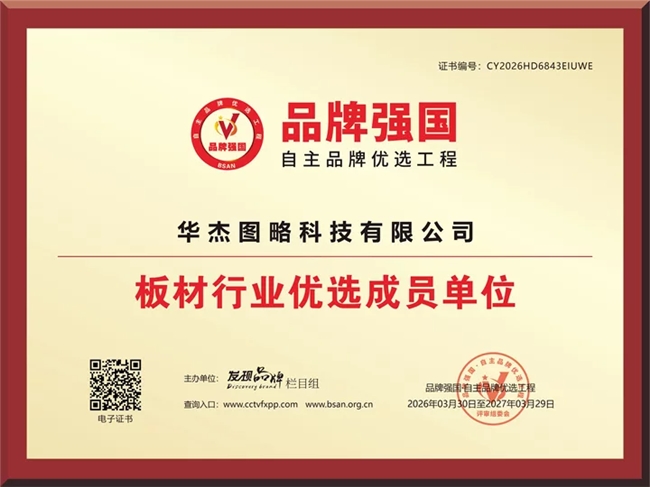 多年来,华杰板材以品质立足市场、以创新驱动发展、以服务赢得口碑,全国经销商网络持续壮大,终端市场占有率稳步提升,成为家居板材行业极具影响力的自主品牌。从产品研发到生产制造,从渠道建设到终端服务,华杰板材每一步发展都紧扣市场需求,以实打实的业绩与用户信赖,印证其深厚的市场根基与强劲的发展动能。此次入选品牌强国优选工程,是市场对其三十年匠心坚守的最好回馈,也是对其未来发展潜力的充分看好。